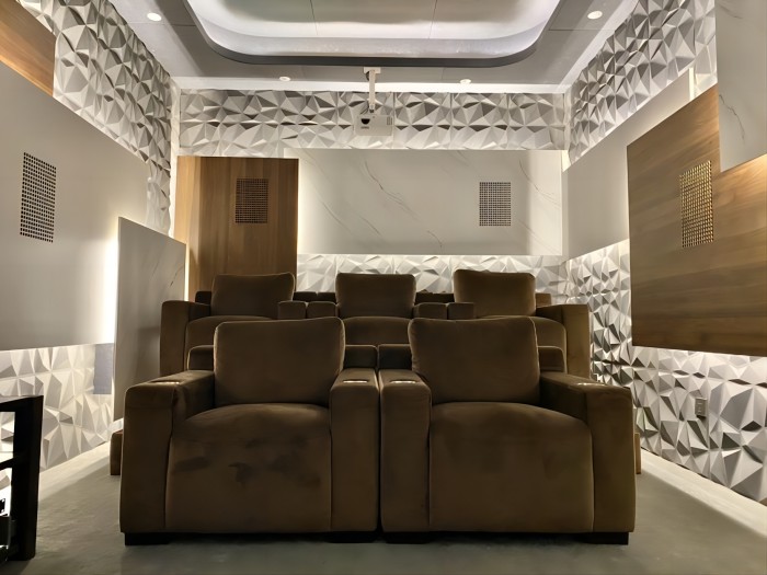 影院配备了先进的投影仪和屏幕技术,确保画面清晰逼真和立体环绕的音效,让人沉浸于音乐的海洋。设计师还考虑了室内的吸音和隔音问题,确保了影院的声学效果达到了一定高度。
