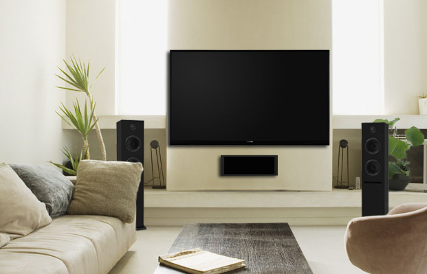 EPOS谱诗K1黑色书架扬声器与DLS结合的客厅影院↑