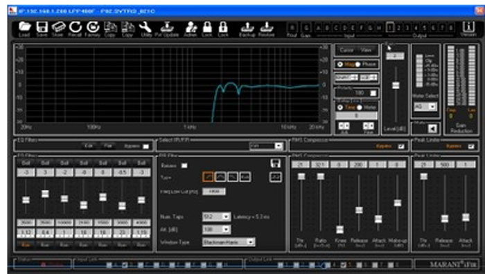 这些扬声器没有被动分频器。这意味着驱动单元直接耦合到放大器,减少了损耗,并且得益于主动分频器,瞬态响应和驱动单元集成度更优。RBH Sound 通过采用有限脉冲响应 (FIR) 滤波器而非像目前大多数主动扬声器使用的 IIR 滤波器,将主动方式提升到了一个新的水平。FIR 的优势是双重的。与相位响应固有地与幅度响应相关联的 IIR 滤波器不同,FIR 提供了独立操纵幅度和相位的能力。最终结果不仅是完美的驱动单元集成,而且是一个时间和相位对齐的扬声器,无需承受在模拟域中使用复杂的一阶分频器或倾斜障板来对齐驱动单元所带来的功率处理能力或离轴畸变的折中。你之所以看不到很多主动扬声器采用 FIR 滤波器,是因为有效实现这一点所需的处理能力非常大。这并不便宜,因此 RBH Sound 在此系统的核心使用了通常用于商业应用的 Marani LPP-480F 旗舰 DSP 扬声器管理处理器。Marani 以 96kHz/24 位进行其处理,并拥有惊人的 8 x 1024 抽头,如果合并 4 个通道用于每个 FIR,则最高可达 2 x 4096 抽头。进行适当的 FIR 滤波需要很多抽头,而几十年前还没有这种处理能力。因此,在某个“菜鸟”(buckaroo)跳上论坛吹嘘他们八十年代使用的老式主动扬声器系统也能做到同样的事情之前,请意识到当年那 8 位 1 MHz 的 Commodore 64 处理器根本做不到。
