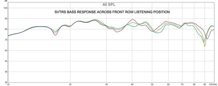 SVTRS 系统拥有三个 8 英寸中低音单元。这几乎相当于一个 15 英寸单元的表面积!它们采用改进的 MTM 垂直排列,RBH Sound 称之为“扩散平均阵列”(dispersion averaging array),使每个中低音单元与高音单元保持相似的距离,以减少垂直平面的波瓣效应。这种排列通过将能量更集中地指向听众来限制水平扩散。结果,RBH Sound 声称所需的侧墙吸声比使用传统驱动单元排列通常需要的要少。